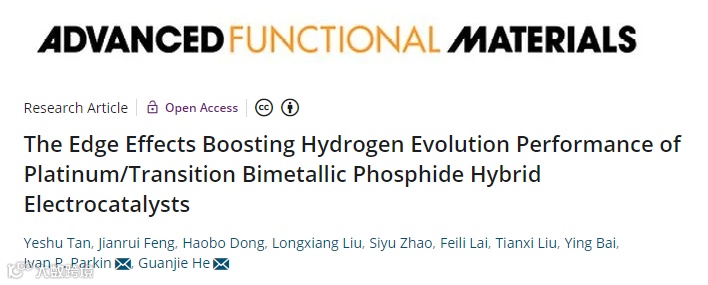 基于此,伦敦大学学院Ivan P. Parkin院士、何冠杰博士团队在国际知名期刊Advanced Functional Materials上发表题为“The Edge Effects Boosting Hydrogen Evolution Performance of Platinum/Transition Bimetallic Phosphide Hybrid Electrocatalysts”的观点文章。该文章提出了独特的异质结构,铂纳米颗粒负载在过渡双金属磷化物纳米片的边缘,研究了基于异质结构的协同效应和基于局部增强电场的边缘效应,助力高效碱性析氢反应。