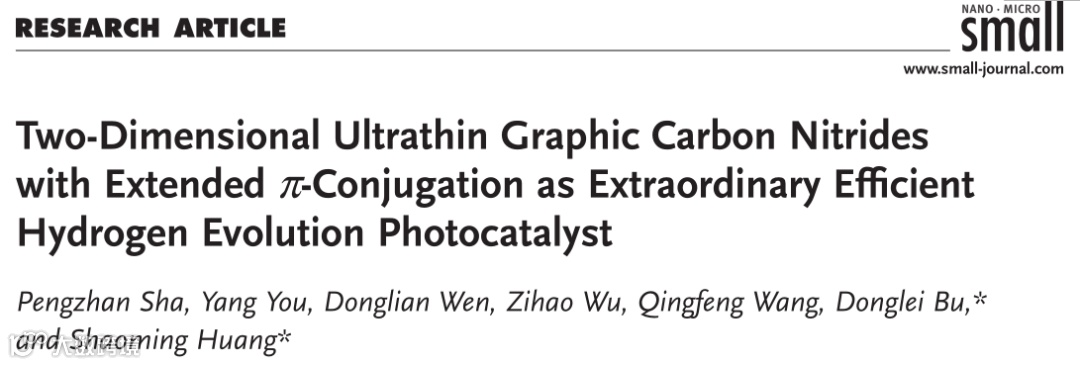基于此,来自广东工业大学黄少铭教授团队,在国际知名期刊small上发表题为“Two-Dimensional Ultrathin Graphic Carbon Nitrides with Extended π-Conjugation as Extraordinary Efficient Hydrogen Evolution Photocatalyst”的文章。