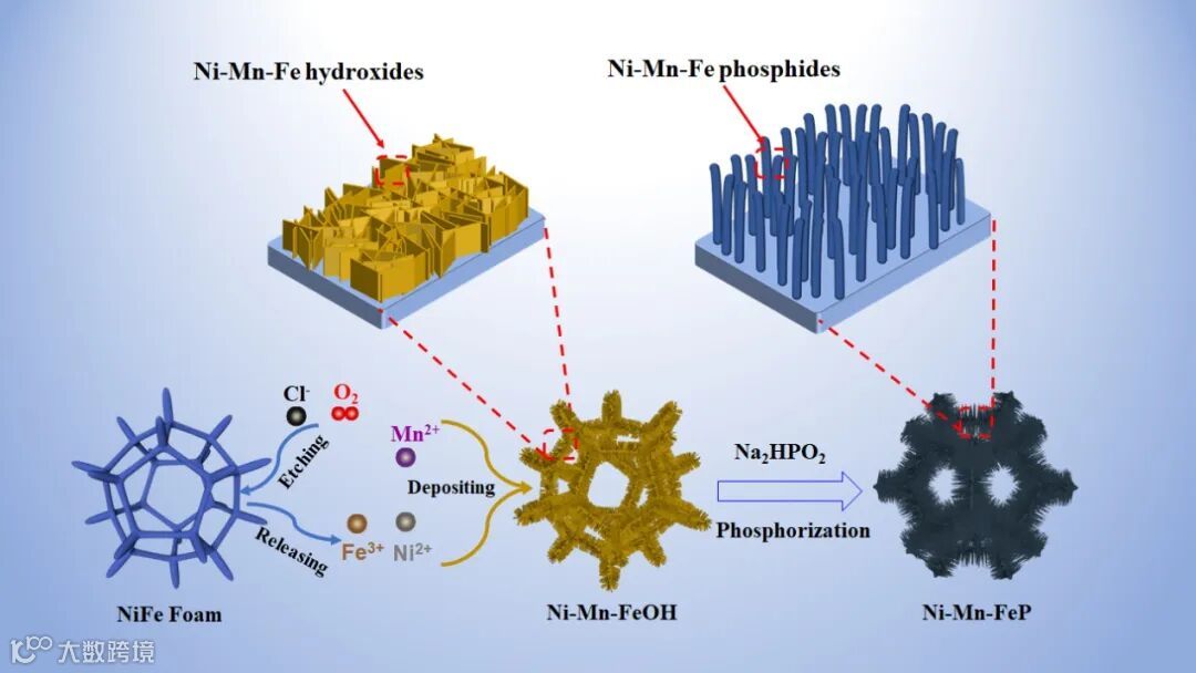 要点一:三维纳米棒阵列结构Ni-Mn-FeP的制备和表征