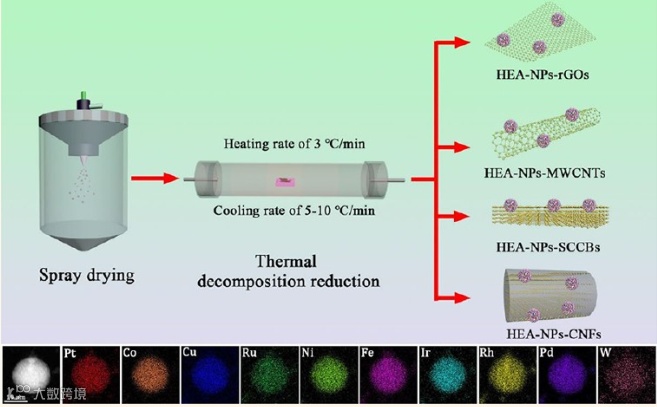 图1. 铂基高熵合金纳米粒子负载于不同碳材料表面