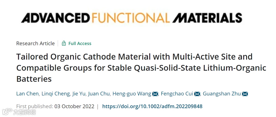 基于此,来自东北师范大学的朱广山教授团队,在国际知名期刊Advanced Functional Materials上发表题为“Tailored Organic Cathode Material with Multi-Active Site and Compatible Groups for Stable Quasi-Solid-State Lithium-Organic Batteries”的文章。