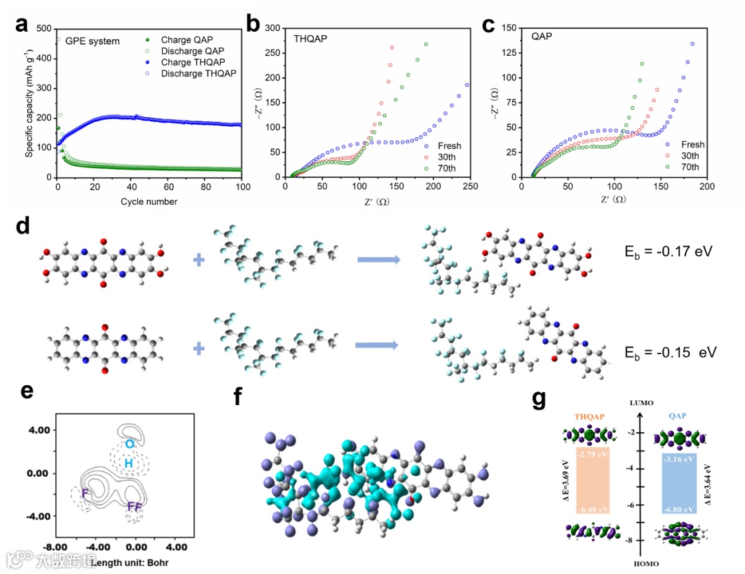 图3 THQAP和QAP正极材料在GPE-0.8中的性能比较和理论分析。