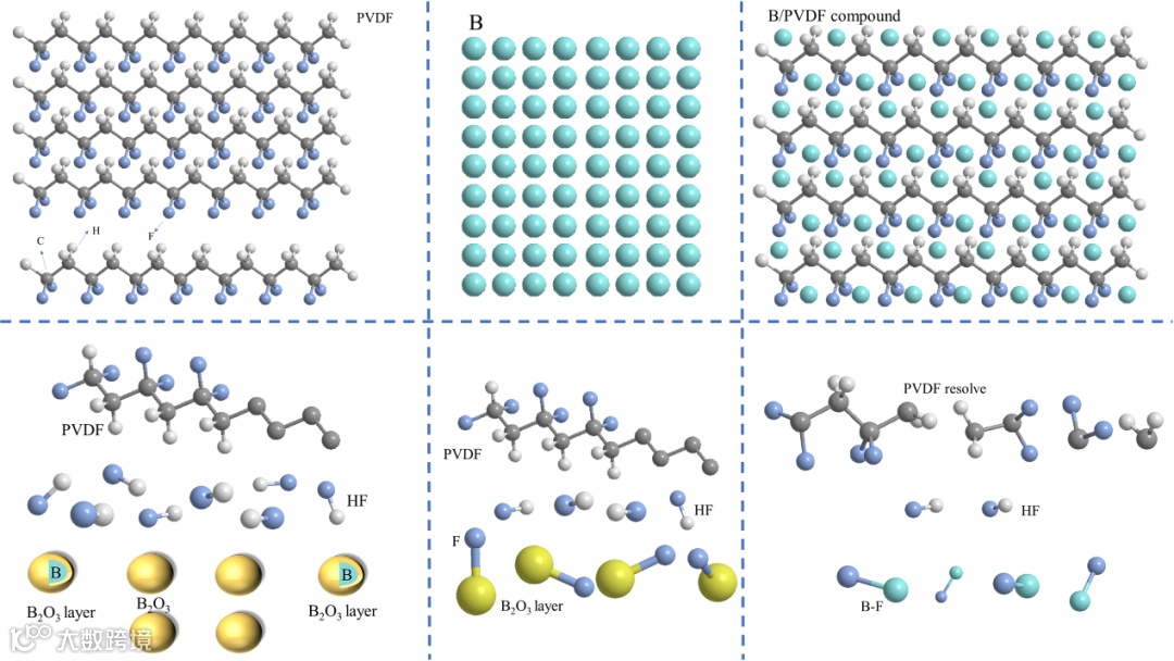 在该反应过程中,F和B反应生成BF3所释放的能量远高于O和B反应生成B2O3所释放的能量,从而提升B/PVDF复合镶嵌结构的能量释放水平。