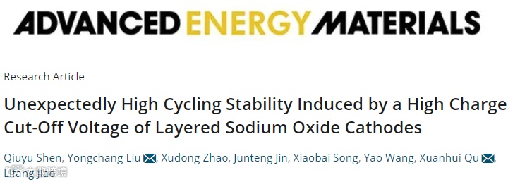 基于此,北京科技大学刘永畅教授(通讯作者)与曲选辉教授(通讯作者)等研究人员在国际知名期刊Advanced Energy Materials上在线发表了题为“Unexpectedly High Cycling Stability Induced by a High Charge Cut-Off Voltage of Layered Sodium Oxide Cathodes”的研究论文。