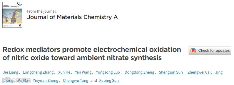 “Redox mediators promote electrochemical oxidation of nitric oxide toward ambient nitrate synthesis”