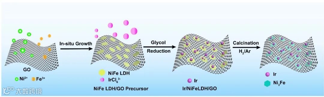 图1. Ir/Ni3Fe/rGO的制备流程图