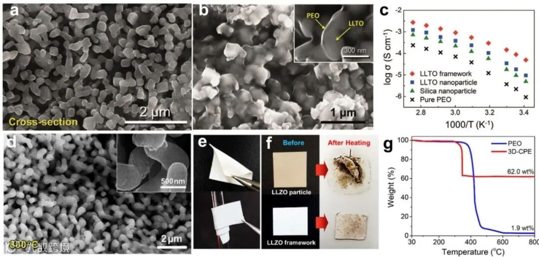 3D框架填料能够有效避免填料在聚合物基质中的团聚,提供长程连续的锂离子传输路径,从而有效提高复合电解质的离子电导率。此外,3D框架填料能够显著提高复合电解质的机械强度,从而抑制锂枝晶的生长。