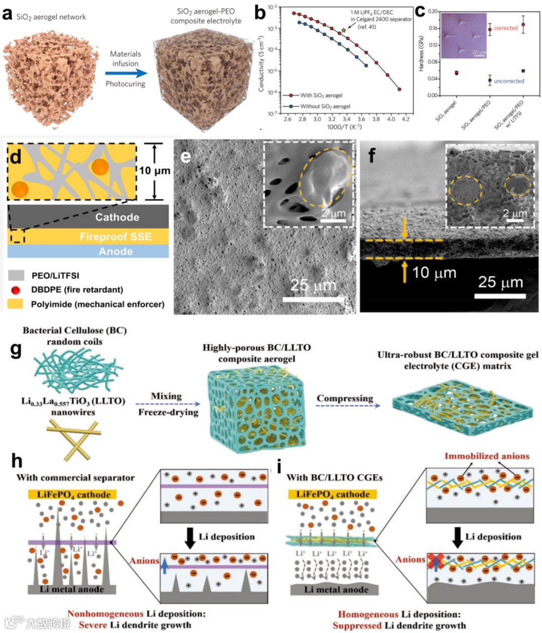 图9. 复合固态电解质中多孔水凝胶3D框架填料的研究进展和成果。