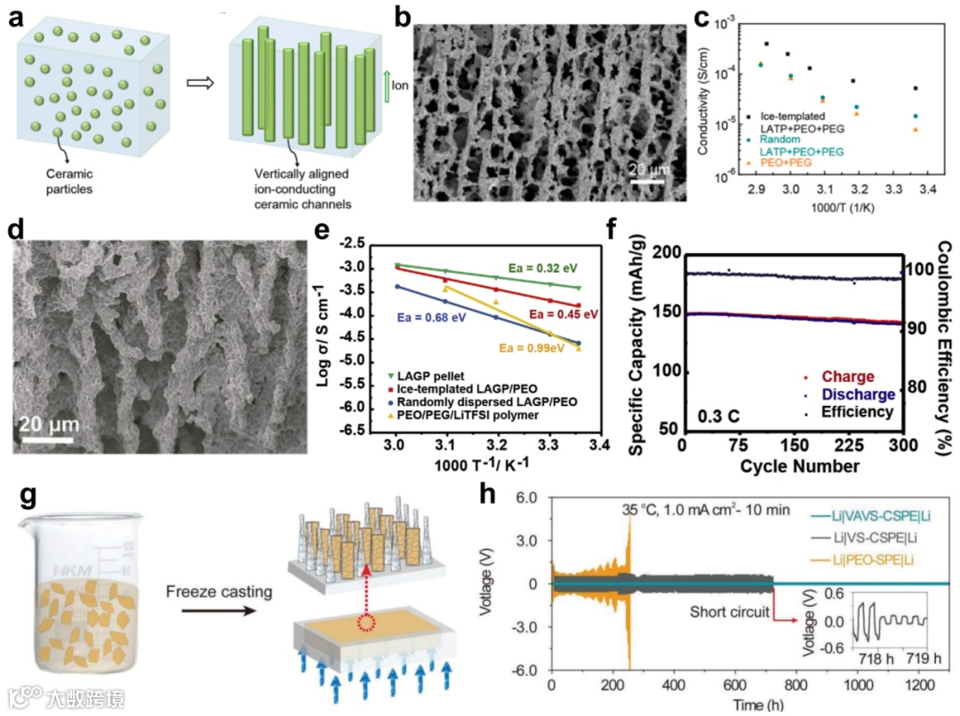 图6. 复合固态电解质中冰模板法获得的垂直3D框架填料的研究进展和成果。