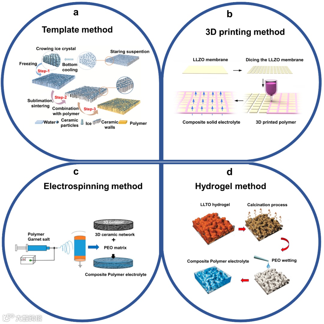4. 大规模制备3D框架填料型复合固态电解质。将3D框架填料型复合固态电解质取代传统的电解液能够有效提高能量密度和电池的安全性。然而,由于当前技术的不成熟,大规模制备3D框架填料型复合固态电解质具有一定的挑战性。为此,需要调整当前的生产工艺来满足薄而柔的3D框架填料型复合聚合物电解质的制备要求。