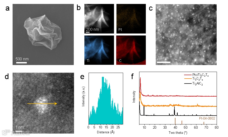 图1. Ptc/Ti3C2Tx的形貌物相表征。