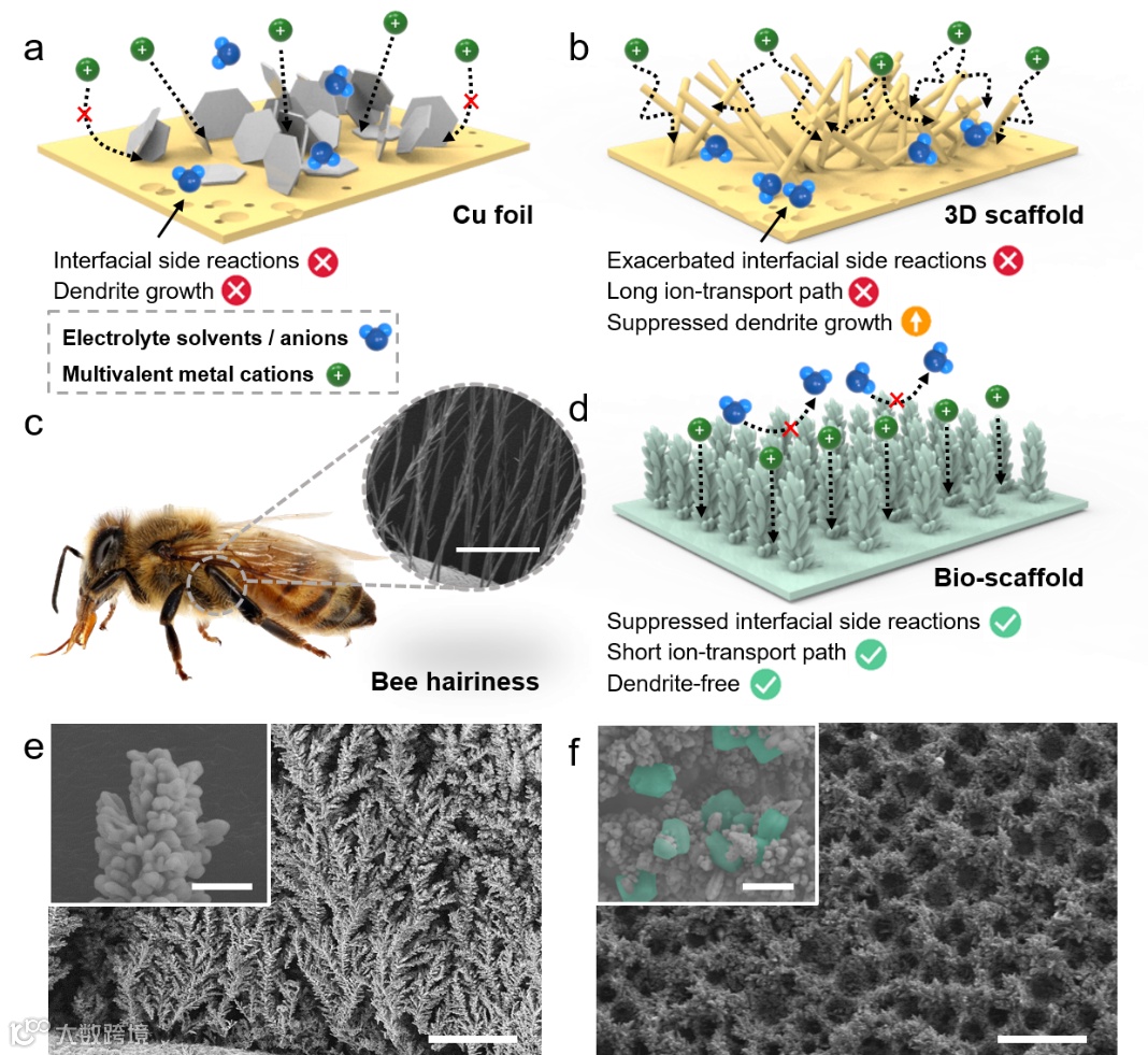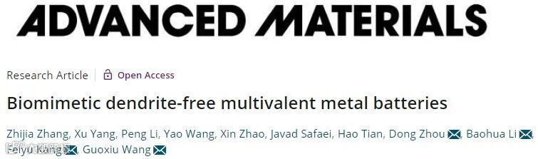 这一成果近期以Biomimetic dendrite-free multivalent metal batteries为题发表在Advanced Materials上,文章的第一作者为博士生张志佳。