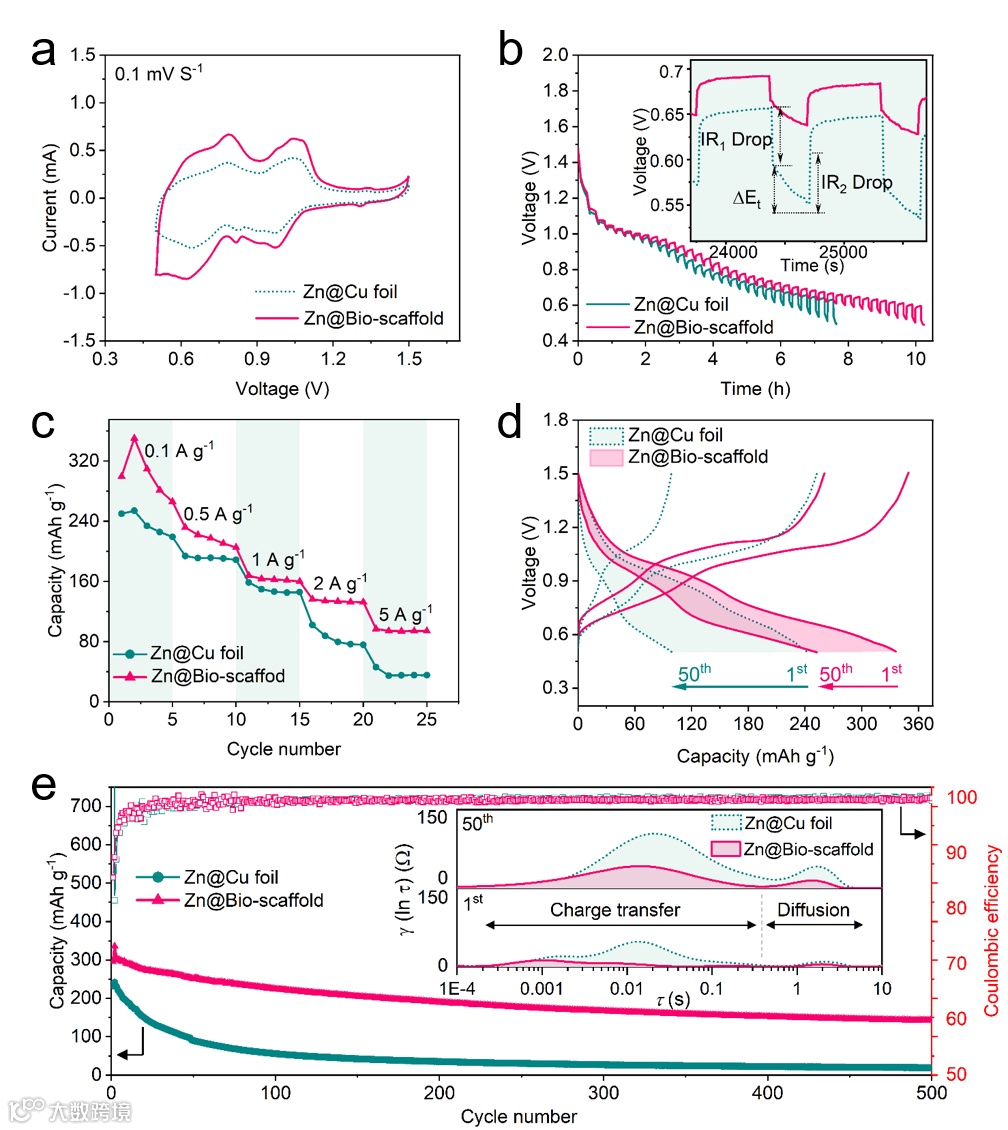 图三. 仿生集流体上的锌沉积电化学表征。