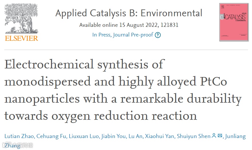 基于此,来自上海交通大学的章俊良教授、沈水云副教授在国际知名期刊Applied Catalysis B: Environmental上发表题为“Electrochemical synthesis of monodispersed and highly alloyed PtCo nanoparticles with a remarkable durability towards oxygen reduction reaction”的研究论文。