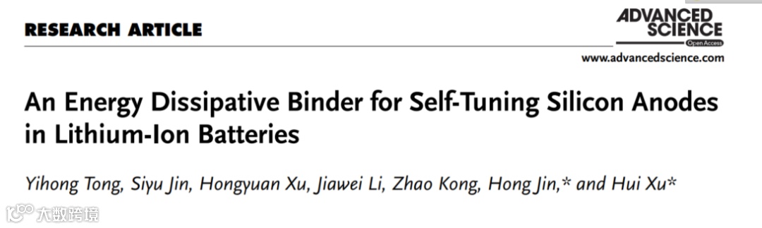 Tong, Y., Jin, S., Xu, H., Li, J., Kong, Z., Jin, H., Xu, H., An Energy Dissipative Binder for Self-Tuning Silicon Anodes in Lithium-Ion Batteries. Adv. Sci. 2022, 2205443.