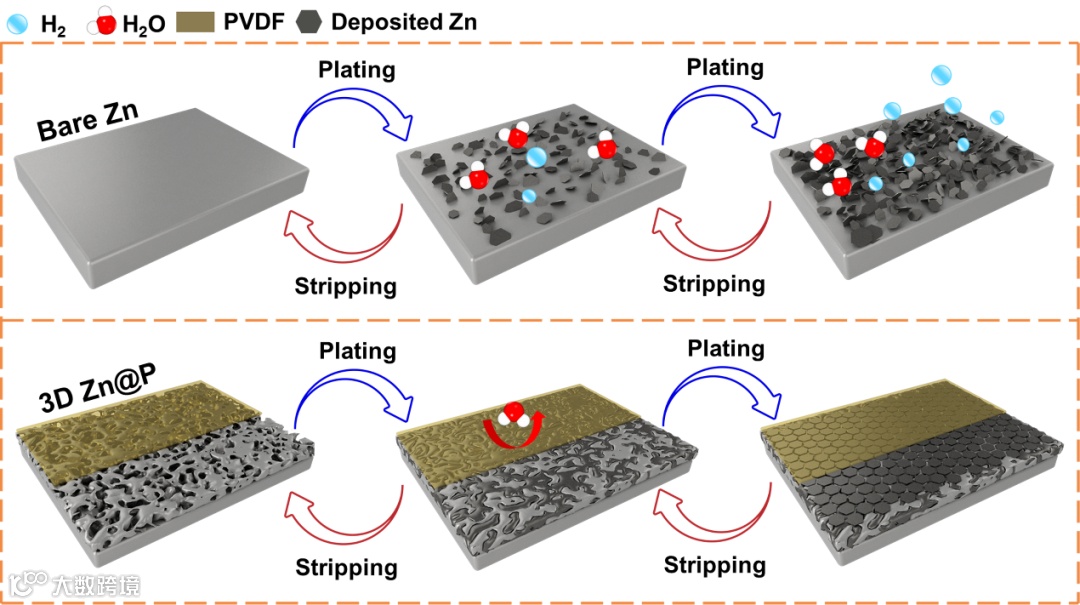 Figure 1. Schematic illustration of Zn deposition on bare Zn and 3D Zn@P electrodes.