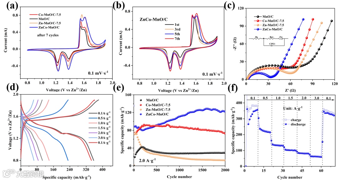 图3. ZnCo-MnO/C的电化学测试。