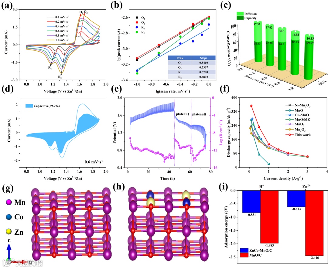 图5. ZnCo-MnO/C的动力学测试及DFT吸附能计算。