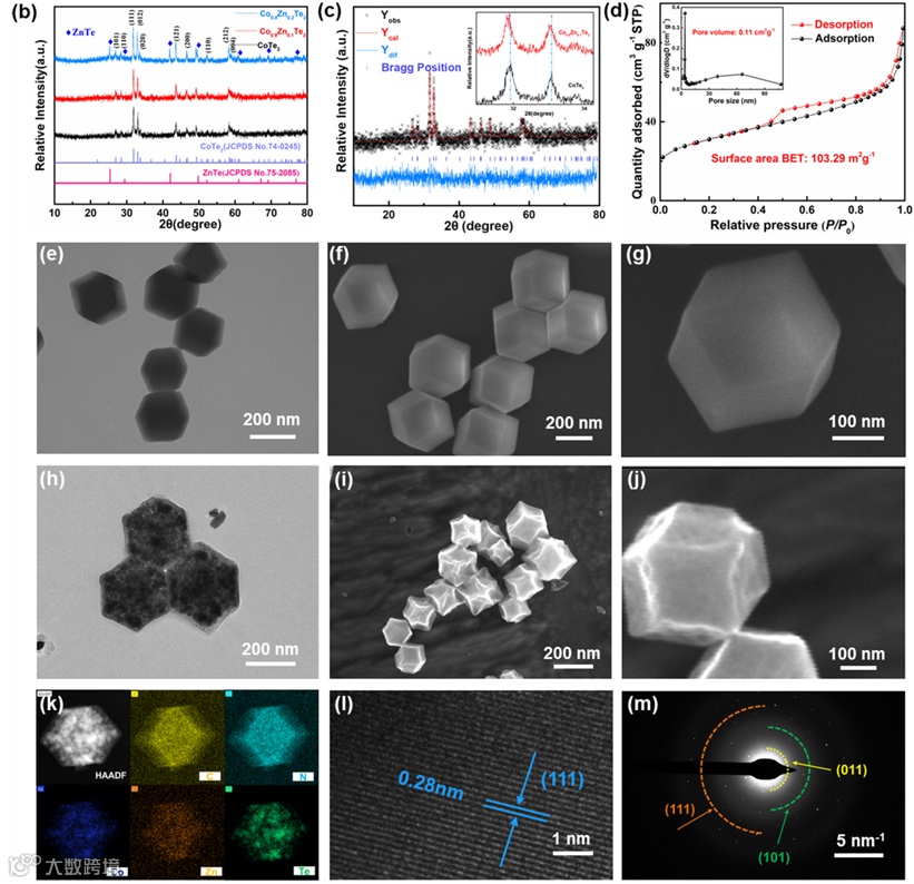 图2. Co0.9Zn0.1Te2@NC的结构及形貌表征