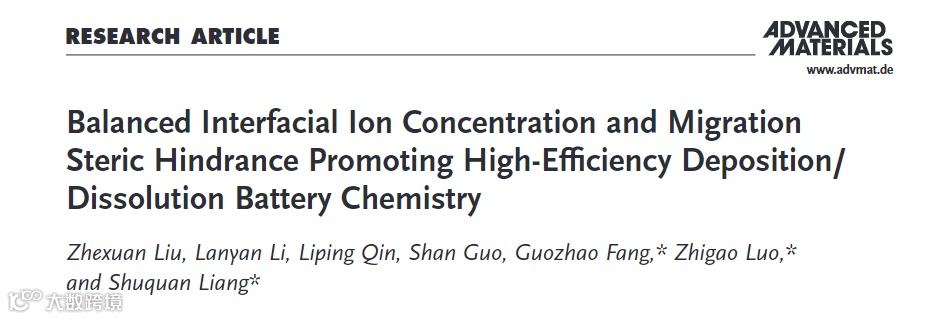 平衡界面离子浓度和离子迁移位阻促进高效沉积/溶解电池化学