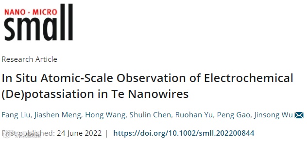 基于此,来自武汉理工大学的吴劲松教授,在国际知名期刊Small上发表题为“In situ atomic-scale observation of electrochemical (de)potassiation in Te nanowires” 的研究论文。