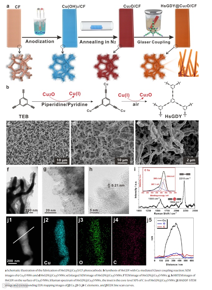 图1:HsGDY@Cu2O NWs的合成策略及形貌表征