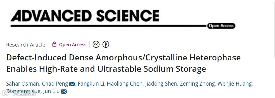 基于此,华南理工大学的刘军教授与中国科学院深圳先进技术研究院彭超副研究员合作,在国际知名期刊Advanced Science上发表题为“Defect-Induced Dense Amorphous/Crystalline Heterophase Enables High-Rate and Ultrastable Sodium Storage”的研究论文。