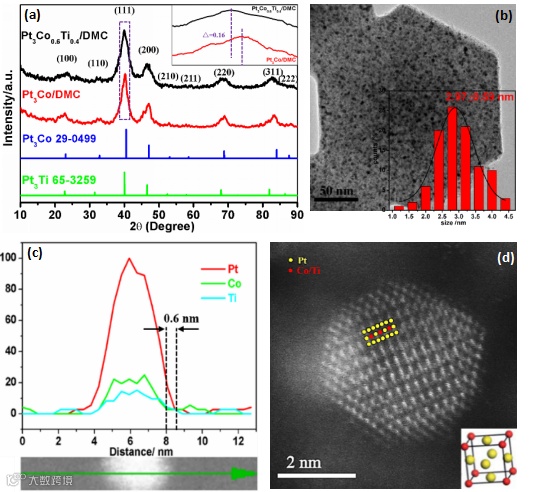 图1. Pt3Co0.6Ti0.4/DMC催化剂的表征
