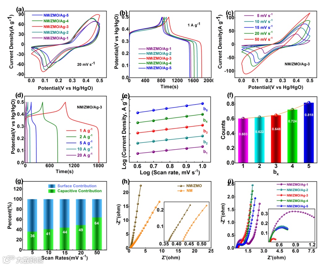 通过电化学动力学研究,分析了贵金属Ag纳米颗粒负载量对结构和电化学性能的影响。此外,作者通过归纳相关领域成果,结合表征和理论计算,从改变材料电子状态、促进电化学反应进行的角度分析了Ag纳米颗粒负载的改性机制。