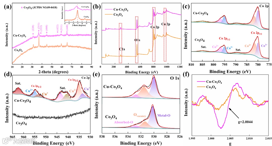 图2 Cu-Co3O4 MCNS的 XRD, XPS, EPR表征