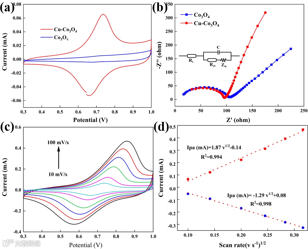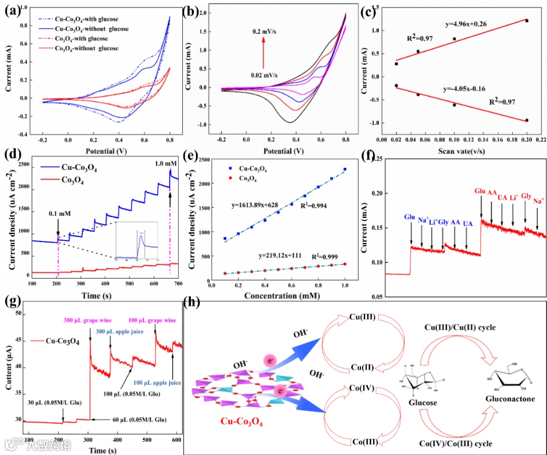 图6 Cu-Co3O4 MCNS的葡萄糖检测性能及其检测机理