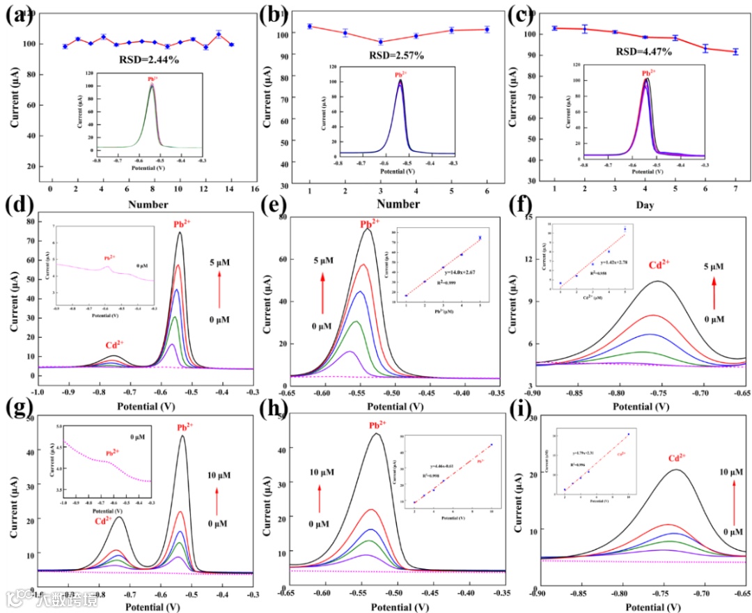 基于此,石河子大学陈龙副教授团队发表了研究性文章,该论文设计合成了富含氧空位多通道金属掺杂Co3O4纳米片,将其应用在生物小分子检测。实验结果表明Cu掺杂Co3O4多通道纳米片 (Cu-Co3O4 MCNS)表现出最优异的性能。其检测Cd(II)和Pb(II)的灵敏度分别为8.73 µA µM-1和20.59 µA µM-1,对葡萄糖表现出1613.86 µA mM-1 cm-2的高灵敏度。同时对Cu-Co3O4 MCNS检测Cd(II),Pb(II)和葡萄糖的机理也进行了进一步解释。