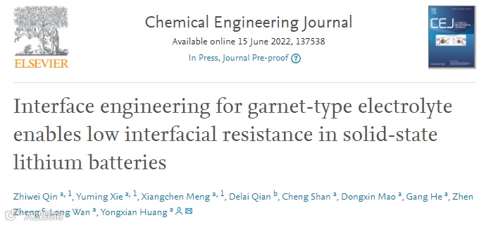 基于此,来自哈尔滨工业大学的黄永宪教授团队在国际知名期刊Chemical Engineering Journal上发表题为“Interface engineering for garnet-type electrolyte enables low interfacial resistance in solid-state lithium batteries”的文章。