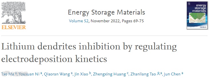 基于此,南开大学陶占良团队在国际知名期刊Energy Storage Materials上发表题为“Lithium dendrites inhibition by regulating electrodeposition kinetics”文章。