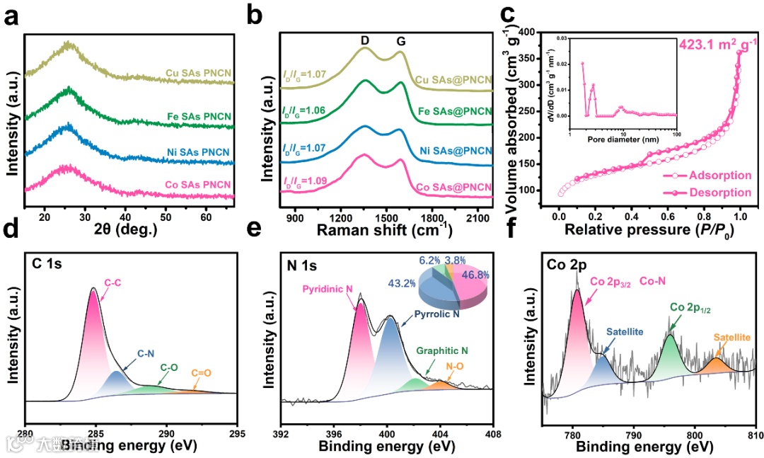 图3. MSAs@PNCN的XRD、Raman、BET和XPS表征