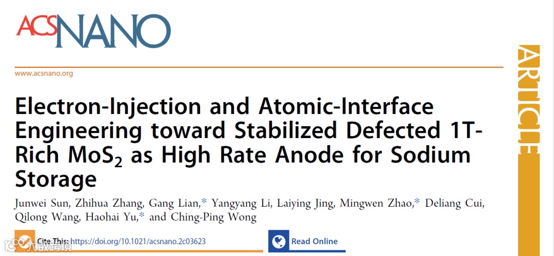 基于此,来自山东大学的廉刚副教授、赵明文教授、于浩海教授在国际知名期刊ACS Nano上发表题为“Electron-Injection and Atomic-Interface Engineering toward Stabilized Defected 1T-Rich MoS2 as High Rate Anode for Sodium Storage”的研究论文。