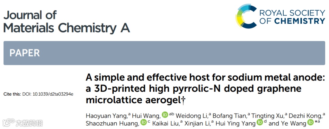 基于此,郑州大学王烨教授在国际知名期刊Journal of Materials Chemistry A上发表题为“A simple and effective host for sodium metal anode: a 3D-printed high pyrrolic-N doped graphene microlattice aerogel”的全文文章。