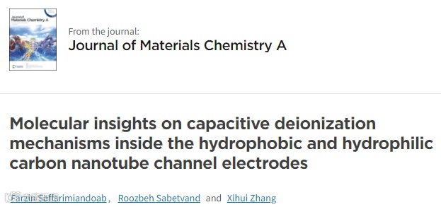 人们普遍认为,拥有更小的孔径、且更亲水的CNT在作为CDI系统的电极时具有更高的脱盐效率,然而这项模拟研究显示,SWCNT的孔径和亲疏水性对脱盐效率的影响是复杂的,它们共同影响了CNT中水分子的结构和电荷补偿。亲水(9,9)CNT有着最好的脱盐性能,这归功于其较小的孔径和亲水的壁面。但是在更大的孔径的CNT中,亲水性反而降低了脱盐性能。这项模拟工作详细且形象地解释了这种现象。