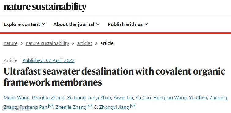 天津大学姜忠义、潘福生/南开大学张振杰:仿生共价有机框架膜实现高效海水淡化