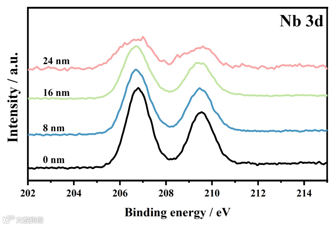 图3. LiNbO3 一体化修饰的富锂锰基正极的Nb元素深度分析