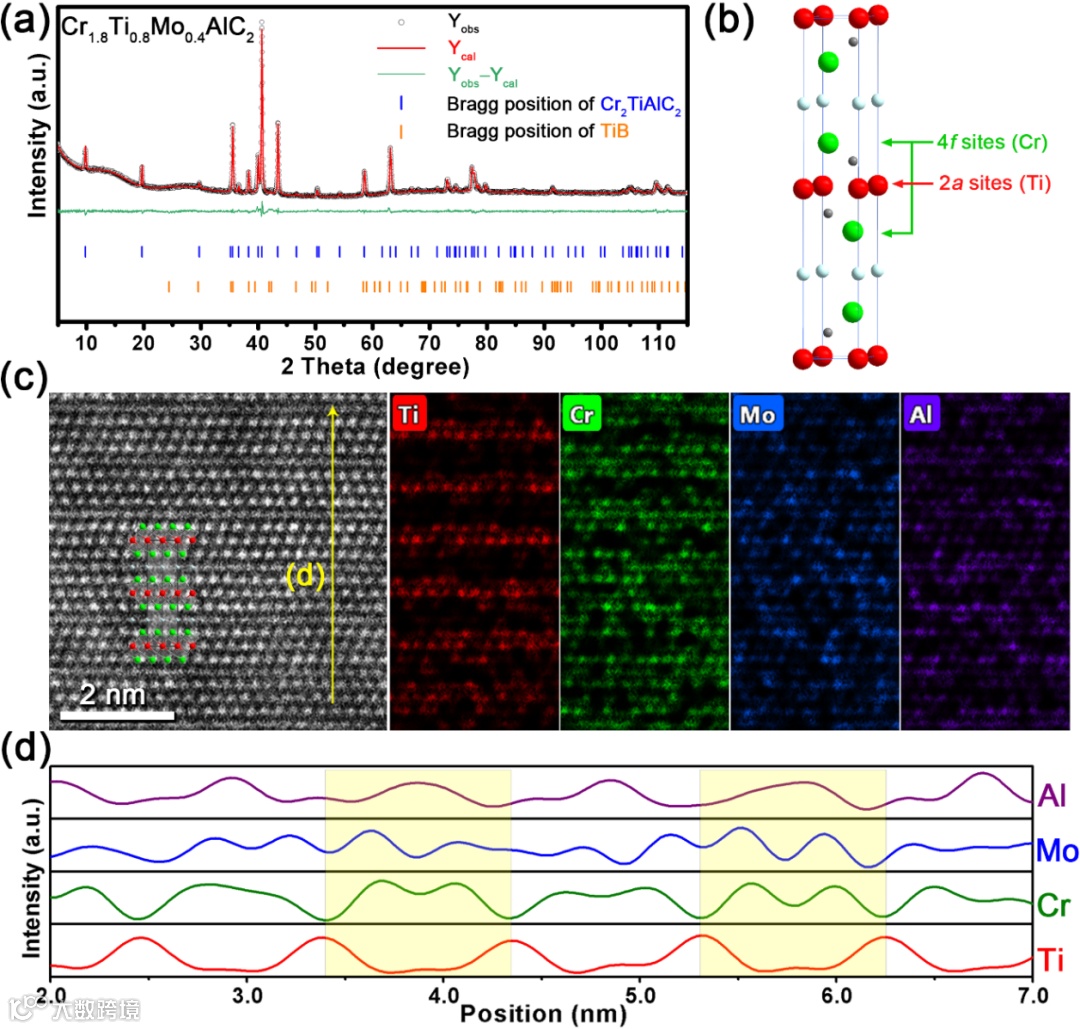 图1. Cr2-xTi1-xMo2xAlC2的相及原子组成