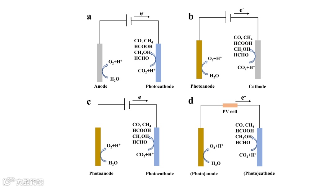 光伏电池串联(PV)系统由光伏电池、光电极或电极以及高效的电化学催化剂组成。在PEC/PV系统中,PV电池提供光电压来驱动太阳能CO2还原,无需使用额外的偏压。与成熟的具有高效太阳能-氢气转换效率的PEC H2O还原系统相比,该串联系统在光伏电池匹配、CO2还原高过电位和产物选择性方面仍面临着巨大挑战。
