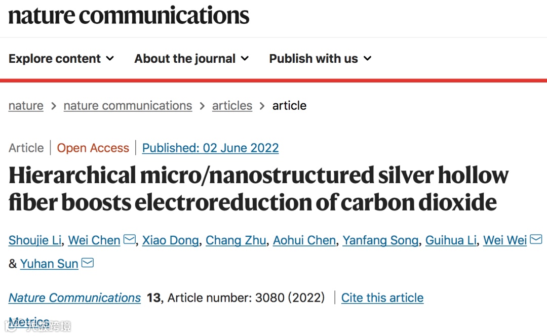 “Hierarchical micro/nanostructured silver hollow fiber boosts electroreduction of carbon dioxide”