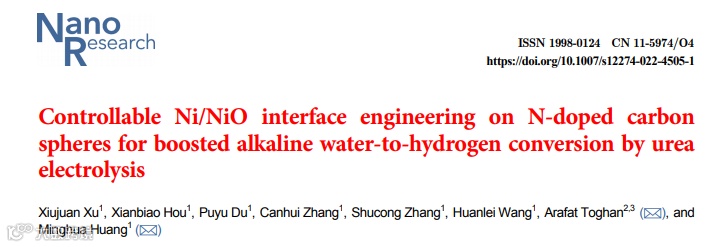 基于此,中国海洋大学黄明华教授课题组等在国际知名期刊Nano Research上发表了题为Controllable Ni/NiO interface engineering on N-doped carbon spheres for boosted alkaline water-to-hydrogen conversion by urea electrolysis的研究工作。