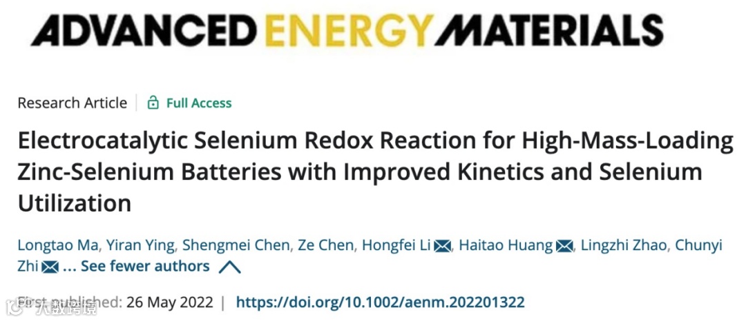 基于此,香港城市大学支春义教授在国际知名期刊Advanced Energy Materials上发表题为“Electrocatalytic Selenium Redox Reaction for High-Mass-Loading Zinc-Selenium Batteries with Improved Kinetics and Selenium Utilization”的研究论文。