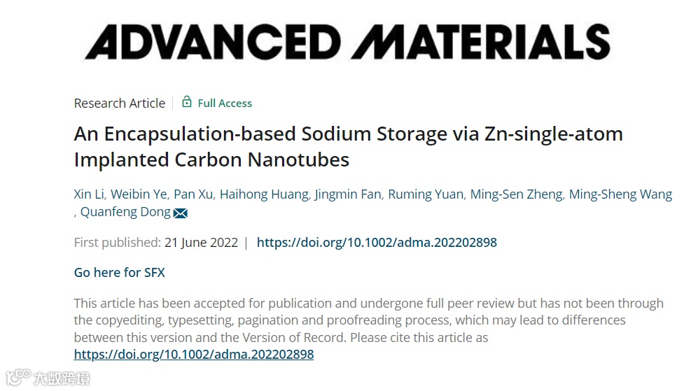 标题:An encapsulation-based sodium storage via Zn-single-atom implanted carbon nanotubes