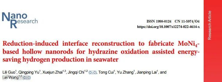 还原诱导界面重构制备MoNi4基空心纳米棒用于肼氧化辅助节能海水制氢