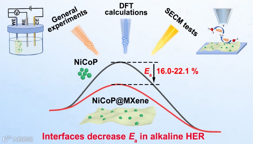 图1. 通过三种不同尺度的测试方法得到,与NiCoP相比,MXene界面可降低16.0-22.1%的活化能。
