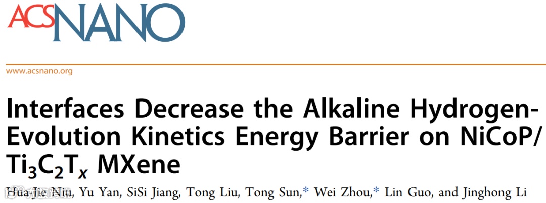 基于此,北京航空航天大学周苇教授与青岛大学孙童教授合作,在ACS Nano上发表题为“Interfaces Decrease the Alkaline HydrogenEvolution Kinetics Energy Barrier on NiCoP/Ti3C2Tx MXene”的文章。