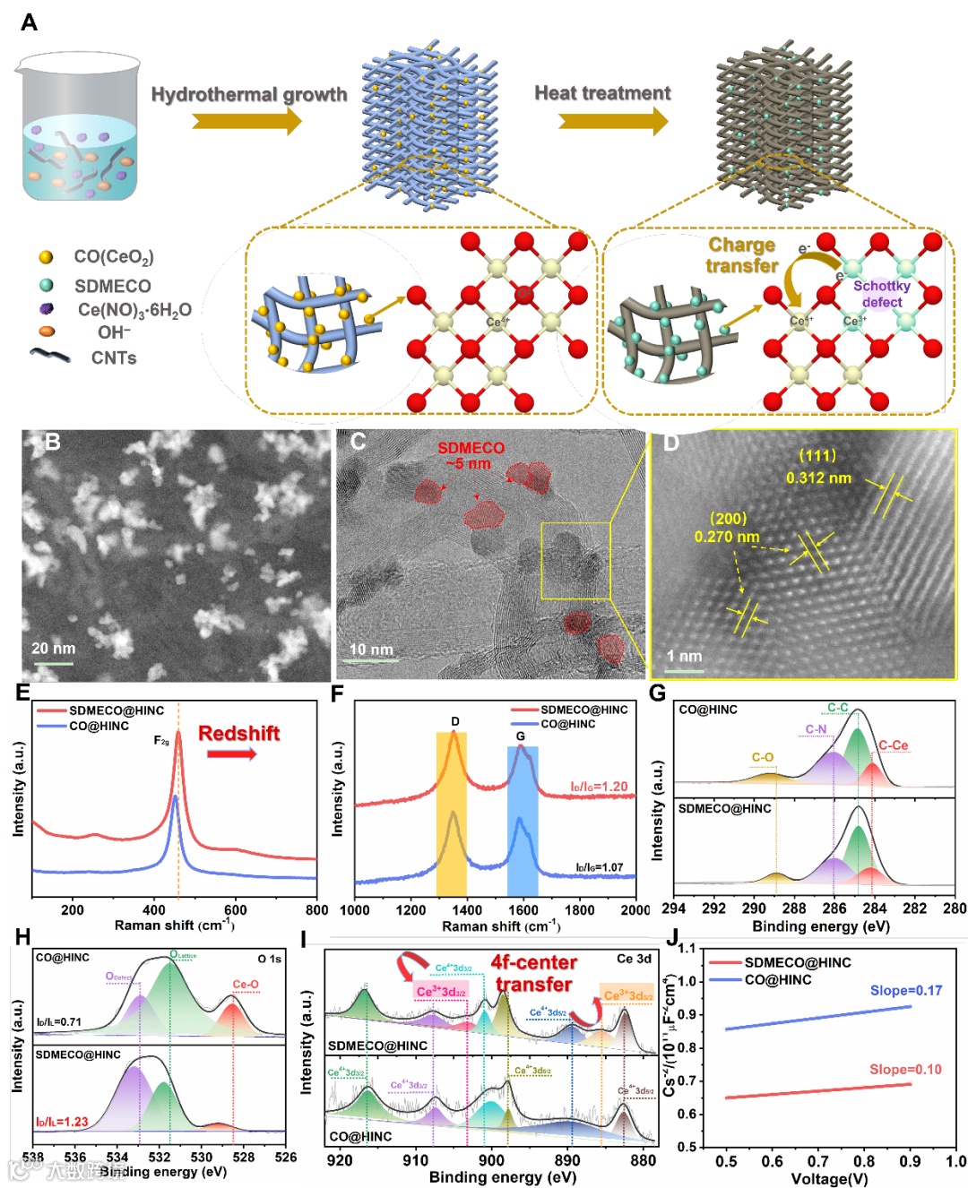 图2 SDMECO@HINC复合体系的合成、形貌特征及4f电子重构过程